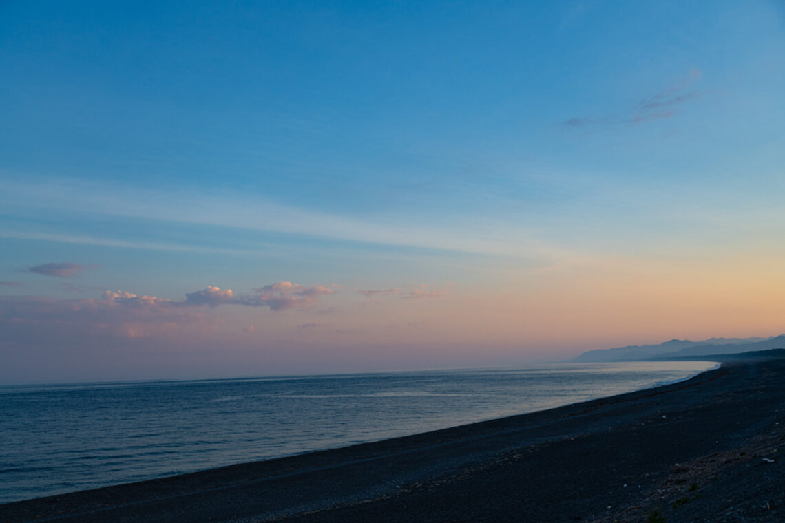 まだまだ日中は汗をかく程暑い日が続きますが、夏が終わる前に海岸線を撮影したいと思い外出。七里御浜なので季節によっては朝焼けと夕焼けの淡い雰囲気が見れますが、今回は夕焼けを撮影。波のざざーっという音と風に揺れる木々の音。夕…