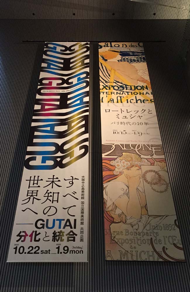 小雨の中、大阪駅から徒歩で大阪中之島美術館へ。地下街を歩きビルの間を抜けて黒いスクエアな建物を川沿いに望む。平日の昼過ぎではありましたが来場者はそこそこあり、美術館の立地を考えるとミュシャやロートレックの人気があってとの事でしょうか?館内に入りチケットを購入し長いエスカレーターに乗って4階へ。