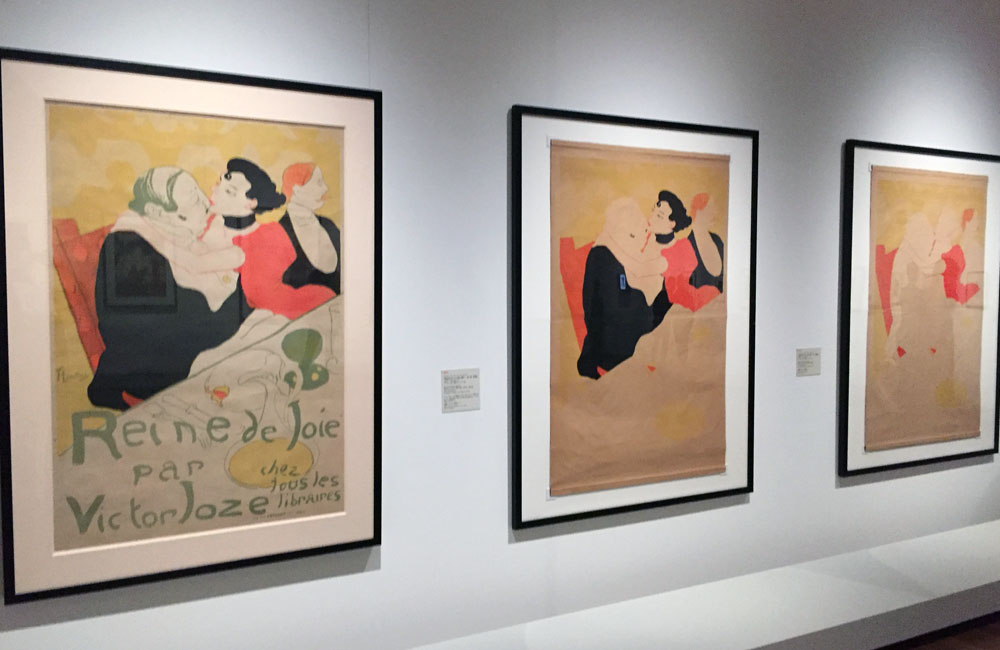 ロートレックの作品から始まり、氏の作品に少し疎い私でも何処かで見たことがある作品が続く。作品の中でも「悦楽の女王」などは試し刷りが同時に並べられ、紙と印刷を好む私としては非常に嬉しく興味が湧く展示となっています。これはミュシャの作品でもあり、絵のみ・絵と演劇タイトル・絵と演劇内容の様に時期が進む事や、出す場所によって行われた変更が同時に見比べる事ができました。1895-1897年の展示ではロートレックの「54号室の女性船客」ミュシャの「愛人たち」「ジョブ」などの私が好きな作品が並びます。中でも「黄道十二宮」はエンジニアを目指していた私を美術の世界に引き戻した作品であり、何度見てもこの絵のバランス、情報の多さには圧巻させられます。