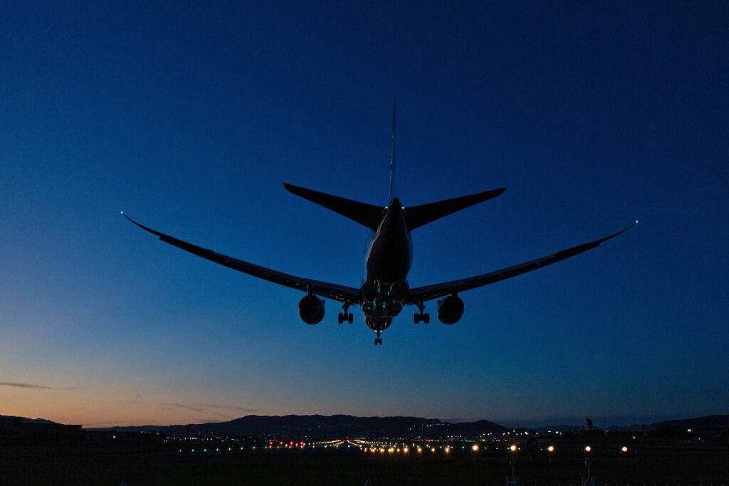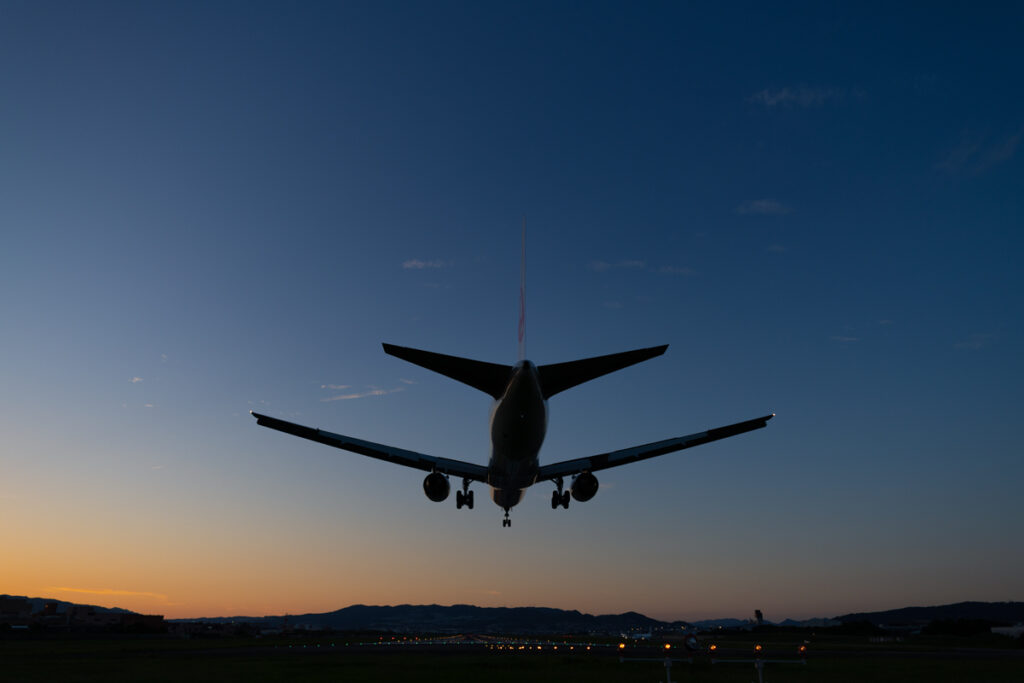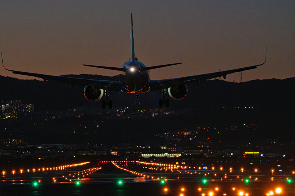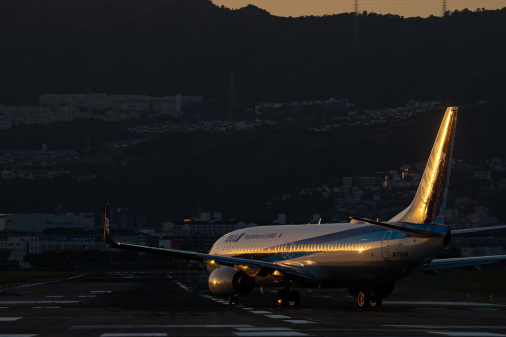 次からは時間に沿って。伊丹空港の写真だと陽が落ちてライトを強調した写真が有名ですが、私は夕方と夜の間にある空にグラデーションがかかった数十分が非常に好きです。撮影するには中々難儀なんですが、綺麗に撮れた時は最高です。