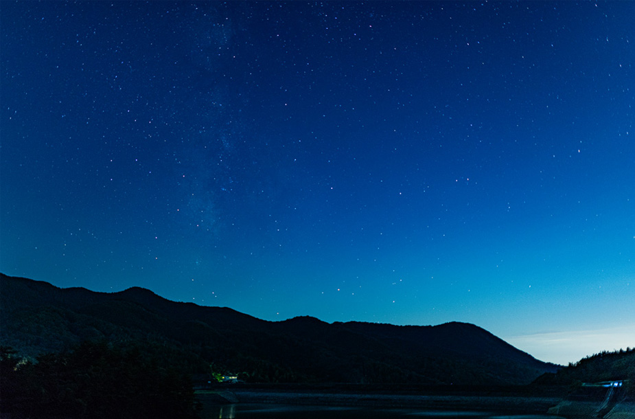 流星群が見れる時期でもあり現地は車の多く、多くの方が星空鑑賞を楽しんでました。撮影の方は21時から約2時間位で、これから深夜の23時には退散しました。そのため山の谷間から向こうの明かりが非常に多く明るくなっています。これはフィルターを導入して減らす方法もありますが、それはまた後日。今回はダム湖奥からの撮影でしたので、次回はダム上部の道から山に向かって撮影してみたいと思います。